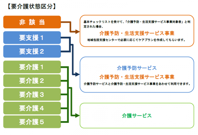 認定審査会で非該当になった場合は、介護保険によるサービスは受けられませんが、基本チェックリストを受けて「介護予防・生活支援サービス事業対象者」と判定された場合、介護予防・生活支援サービス(訪問介護、通所介護)を利用することができます。